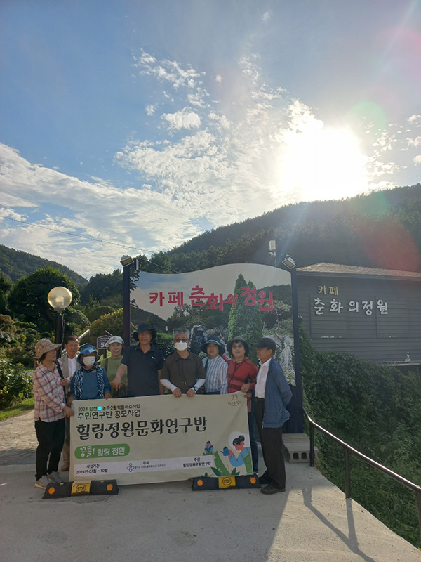 힐링정원연구와 정원인력양성 기반조성, 합천 정원 실태 조사 및 발전모델 연구, 주민참여 정원문화 확신을 목표로 2024년 주 민연구반 공모사업에 참여한 액션그룹입니다. 이후 힐링정원문 화연구회를 발족하여 활동하고 있습니다. |