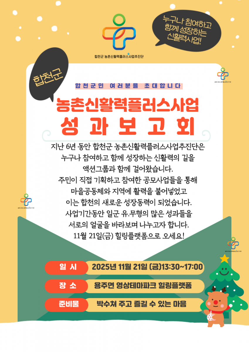 - 문의 : 추진단 사무국(055-932-3955, gogohapcheon@korea.kr)
